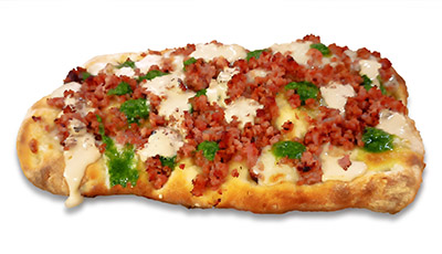 LE PIZZE Bismark Salsa de tomate, mozzarella fior di latte, prosciutto y huevo 13,00 € Quattro Formaggi Salsa de tomate, mozzarella fior di latte, gorgonzola, fontina y parmigiano 14,50 € Piamontese Salsa de tomate, mozzarella fior di latte, cebolla caramelizada, beicon y orégano 14,50 € Tartufo Funghi Crema de trufa, mozzarella fior di latte, setas, queso parmigiano y crujiente de jamón 14,50 € Principale Salsa pesto, mozzarella fior di latte, berenjena, calabacín, pimiento rojo y ricotta salada 15,50 € Napolitana Salsa de tomate, mozzarella fior di latte, alcaparras, anchoas y orégano 14,50 € Sorrento Salsa de tomate, mozzarella fior di latte, champiñón, prosciutto, queso gorgonzola y tomates cherry 14,50 € Capricciosa Salsa de tomate, mozzarella fior di latte, champiñón, prosciutto, salami, pepperoni y aceitunas negras 14,50 € Calabresa Salsa de tomate, mozzarella fior di latte, cebolla caramelizada, pimiento rojo y queso de cabra 14,50 € ✻ CALZONE Calzone Clásica Salsa de tomate, mozzarella fior di latte, prosciutto y champiñón 14,50 € PINSA ROMANA Pinsa Aragonese Longaniza de Graus, salsa de gorgonzola, crema de rúcula y alioli de ajo negro 18,00 € ✻